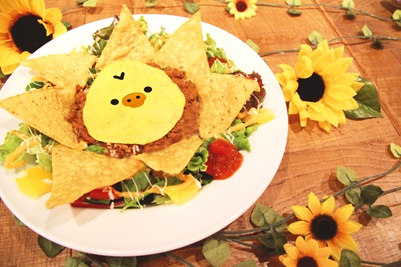 大きなひまわりが咲いたキイロイトリのタコライスです。