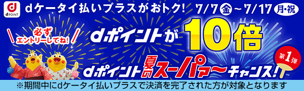 エントリー&dケータイ払いプラスで決済完了でdポイント10倍!