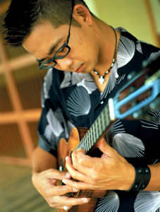 彼は〈ほのぼの楽器〉のイメージが強いウクレレの枠を超えて、ロックやジャズ、ブルーグラスなどさまざまなジャンルを飲み込む変幻自在なアーティストだ。ステージ上では、時にウクレレを歯で弾くというメタル・バンドも真っ青の悶絶プレイを披露したりもする。「ウクレレはシンプルな楽器だからこそ、プレイヤーにはクリエイティヴィティーや、よりイノヴェイティヴな要素が必要とされるんだ」と語るように、その影には常に新しいものへの挑戦と試行錯誤が感じられる。それはサーフィンという同じ趣味を持つ同郷のジャック・ジョンソンを「前から共感できる存在だったんだ。僕も彼も音楽的にハワイアンじゃないという意味でちょっとハズれているというか。ハワイからも新しいアーティストや作品が生み出されている証拠だと思う」と語ることからも伝わってくる。彼が常に〈ハワイ代表〉と括られがちな状況を思い切って打破した新世代のパイオニアのひとりであることは間違いない。