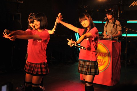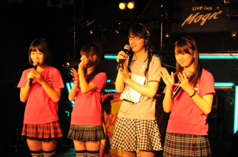 感想をコメントした後も、「アルバム出したい」「PV作ってみたい」と、野望を次々と口にする意欲的な4人。発表を終えてほっとした様子の彼女たちは、「盛り上がっていいんだよー!」と会場を再び煽り、“まず太鼓”と“MAGIC PARTY”を続けてパフォーム。大盛り上がりでライヴを締め括ってくれました!