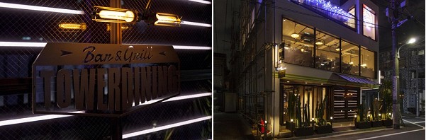 左から、TOWER DINING恵比寿店ロゴ、外観