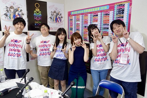 本番組では、総選挙結果の実況はもちろん、総選挙ランクイン直後のメンバーをゲストに招き貴重なトークを展開。総選挙不参加のAKB48/NGT48 柏木由紀とNMB48 山本彩がMCを担当し、総選挙ランクイン・メンバーが次々と喜びのコメントを語った。