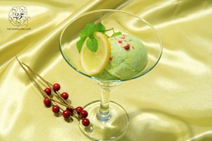 「氷の花」をイメージした淡い水色に、蒼い月を模したレモンを浮かべました。