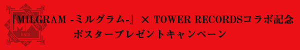 期間中、タワーレコード渋谷店で対象商品をご購入の方に先着で『MILGRAM -ミルグラム-』×TOWER RECORDSポスター(全1種/B2サイズ)をお渡しいたします。