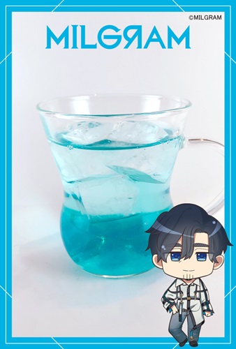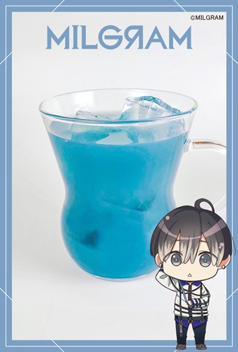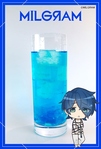 ミコトのイメージカラー「ブルーグレー」を表現したドリンク。