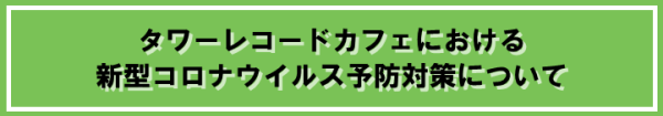タワーレコードカフェでは、ご来店いただく皆様に安心してお楽しみいただけるよう、徹底した新型コロナウイルス感染症予防対策を実施いたします。店舗・従業員の対策やご来店いただく際のお願い、注意点につきましては【 こちらのページ 】をご確認ください。