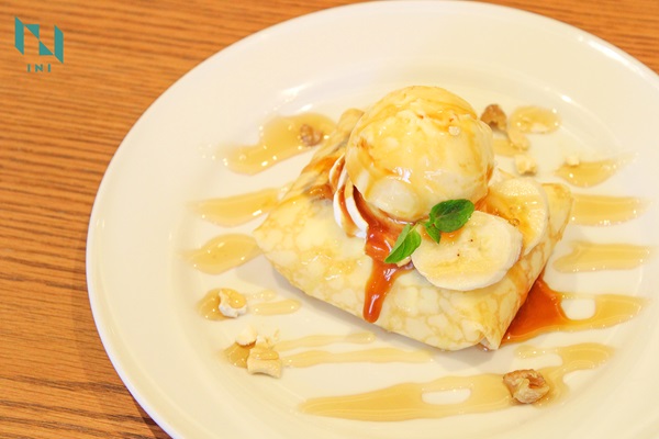 (スポンジケーキ/ミックスナッツ/チョコレートソース/バナナ/クレープ生地/ホイップクリーム/バニラアイス/ミント/メープルシロップ/キャラメルシロップ)