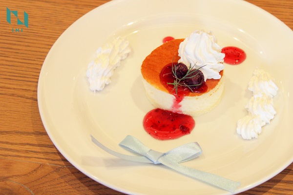 (スフレチーズケーキ/ホイップクリーム/ブルーベリーソース/ブルーベリー/ディル)
