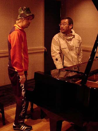 ロケハンをして構図の確認。「ピアノ使いたいなぁ」と小道具を探す箭内さんと平間さん。結局、調律の関係でスタジオの楽器を触っていけないことが判明。スタジオに立ってるお二人をシンプルに撮影をすることになりました。