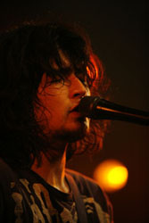 「いろんなハプニングがありまして、面目ない(笑)。今日は〈世界で一番嫌いなパーティー〉だから、そりゃ、こういうことも起こるわな」――。冒頭でギターの音が出ない!? ……と思ったらコードが抜けていた、などのアクシデントを笑いに変えつつ、セットは先行シングルのカップリング“悲しい言葉”を挟んで、新作のオープニング・ナンバー“勇気の花”へ。アコギを中心としたバンド・サウンドに溶け込んでゆく、清澄な電子音。その音の隙間に浮遊している微妙な音の揺らぎが、ひどく耳に心地良い。続く“空中ブランコ”では、MINGUSSの小西麻美がゲスト・コーラスとして登場。伸びやかな歌声で華を添える。