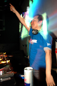 続いて登場したのは、レーベルのラスト・リリースとなったベスト盤『FINE:The Best of Frogman』のメガ・ミックスも担当したTAICHI MASTER。テクノと平行してヒップホップも血肉としてきた男ならではのセンスが氏の持ち味。バウンシーでディスコティックなトラックを、スクラッチも織り交ぜながらガシガシと繋いでいく。そんなDJっぷりを象徴するような〈B-BOYハウス〉の名曲、スウィッチ“A Bit Patchy”が繰り出される頃には、フロアの温度も沸点に。