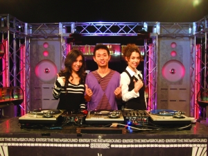NHKのTV番組「J-MELO」に出演してきました。3人と3台のタンテがマッチしてますね~。司会はこの2人、May J.とシャンティ! 2人は混血の歌姫。May J.には5か国の血が混ざっているんだって。しかもこの番組、世界180か国もの場所で放送されるので、そのため3人はすべて英語で会話をしていくのです。てか、初めてTVで英語をしゃべったもんで、恥ずかしいったら。結構緊張した。姫らはバリバリ英語流暢。放送は10月18日(土)の夜中4時なのでもう終わってしまってますが、再放送もあるみたいです。ちょこっとDJもしてきたんで、タイミングが合えばチェックしてみてください。