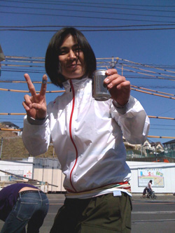 先日スタッフと自転車に乗って箱根まで行ったマ社長、完走後の一杯!
