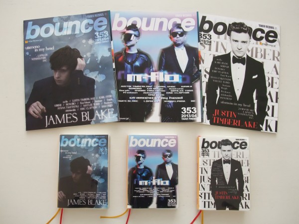 ドドン!! 今回も、bounceの表紙が〈タワレコ手帳2013〉の〈着せ替え表紙〉になっちゃいました! 本誌と大きさを比較すると、こんな↓感じなんです。