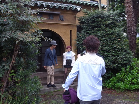 みなさんの準備が整い、まずは外での撮影から。