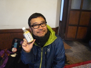 最近、健康に気を遣っているカメラマンの平間さんは血圧に効果のあるお茶を飲みながら、おせんべいをつまみ食い~!