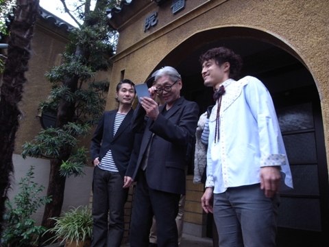 細野さんの撮影中、他のメンバーは記念撮影。笑い声が聞こえたので、「何やってるのかなー。」と覗き込む細野さん。