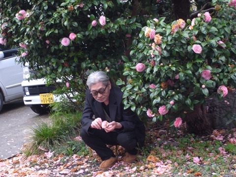 「これがいいな。」と花を一輪拾いあげて頭にのせるお茶目な細野さん。
