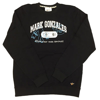 MarkGonzalesのデッキトレーナー。フロントにロゴとデッキ、バック襟首部分にロゴがプリント。