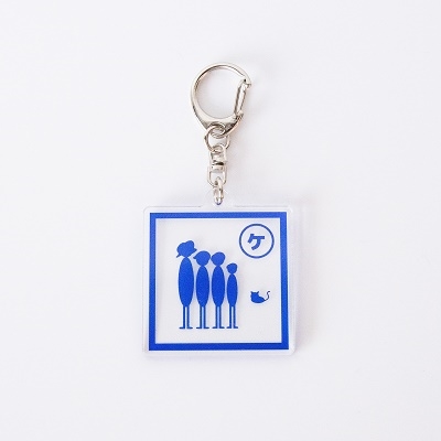 クリアボディにブルーのイラストを施したアクリルキーホルダー。