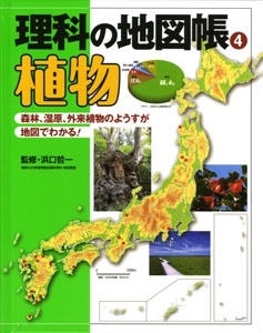 針葉樹や広葉樹の分布、日本と世界の植生、絶滅のおそれのある植物など、植物たちのくらしと現在の状況を地図であらわします。