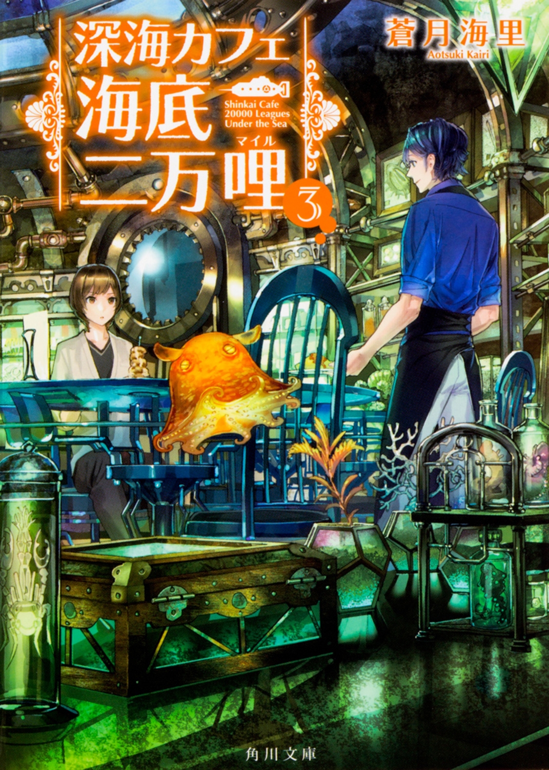 サンシャイン水族館のミズクラゲの回廊のそばにある扉を開くと、そこは"深海カフェ 海底二万哩"という不思議な空間。そっと入り込んだ僕、来栖倫太郎をいつものように深海(ふかみ)とその執事でメンダコのセバスチャンが歓迎してくれる。今日の客は、八景島シーパラダイスに繋がった入り口からやってきたと思われる女性、真帆。誰にでも意見を合わせ、自分では何も決められない彼女はなぜそうなってしまったのか、それを探りに深海たちは真帆と一緒に彼女の"心の海"に潜ってみる。(「クダクラゲシュークリームサワー」)。他に、誰かの宝物を呑み込んでしまったようだ、というデメニギスの相談を受ける(「デメニギスゼリーケーキ」)。うっかりセバスチャン共々、カフェ店内から"心の海"に落っこちてしまった倫太郎が出会ったのは?(「シーフードサンドイッチ」)。日本最古の水族館を調べて、葛西臨海水族園で出会ったのは、「幽落町」にでてくるアノ人だった!(ブレイクタイム アクアミュージアムヒストリー)