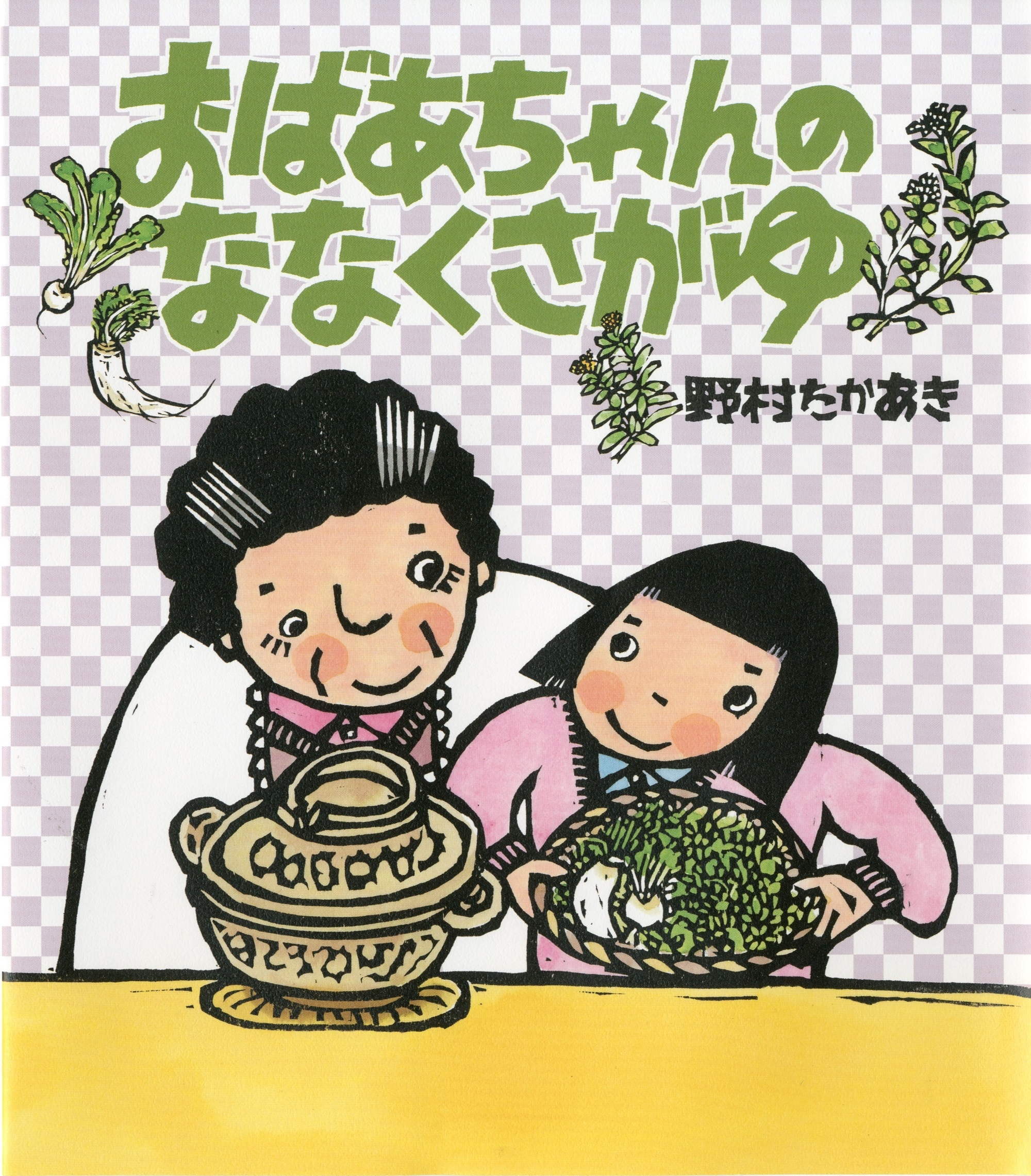 作者の野村たかあき先生と一緒に、野山に七草をさがしに行きました。先生のご自宅の庭にも、七草のうち二種類が自生していて、びっくりしました! 七草は、思ったよりも身近な存在なのですね。堀江ひろ子先生のレシピには、おもちを入れたり、七草がそろわなくても春菊など青菜で作れるといったアイディアが書いてあります。ぜひ、お子様といっしょに七草をさがしたり、作って食べたりして、行事食を楽しんでください。