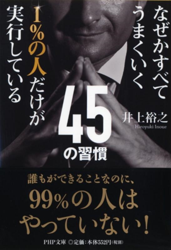 なぜかはわからないけど、やることなすこと全部うまくいく──。▼そんな「すべてがうまくいっている1%の人」と、「何かがうまくいっていないその他99%の人」の違いはどこにあるのか?▼本書では、両者を分ける「45の分岐点=ほんのわずかな習慣の違い」を、歯科医師、セラピスト、コーチとして6万人以上の悩みに接してきた著者が徹底解明。▼【両者を分ける習慣の違いの例】▼×99%の人は、「頑張ります」とよく口にする▼○1%の人は、「頑張ります」という言葉は使わない▼▼×99%の人は、「自己否定グセ」がついている▼○1%の人は、真面目な努力家が陥りやすい「落とし穴」を知っている▼▼×99%の人は、ミスをした自分を責め続ける▼○1%の人は、ミスはすぐに忘れる etc.▼▼一生懸命頑張っているのに、その努力が報われず、思いどおりの人生を送れていない……そんな負のスパイラルから抜け出し、「心から満足できる人生」を送るためのヒント満載。▼文庫書き下ろし。