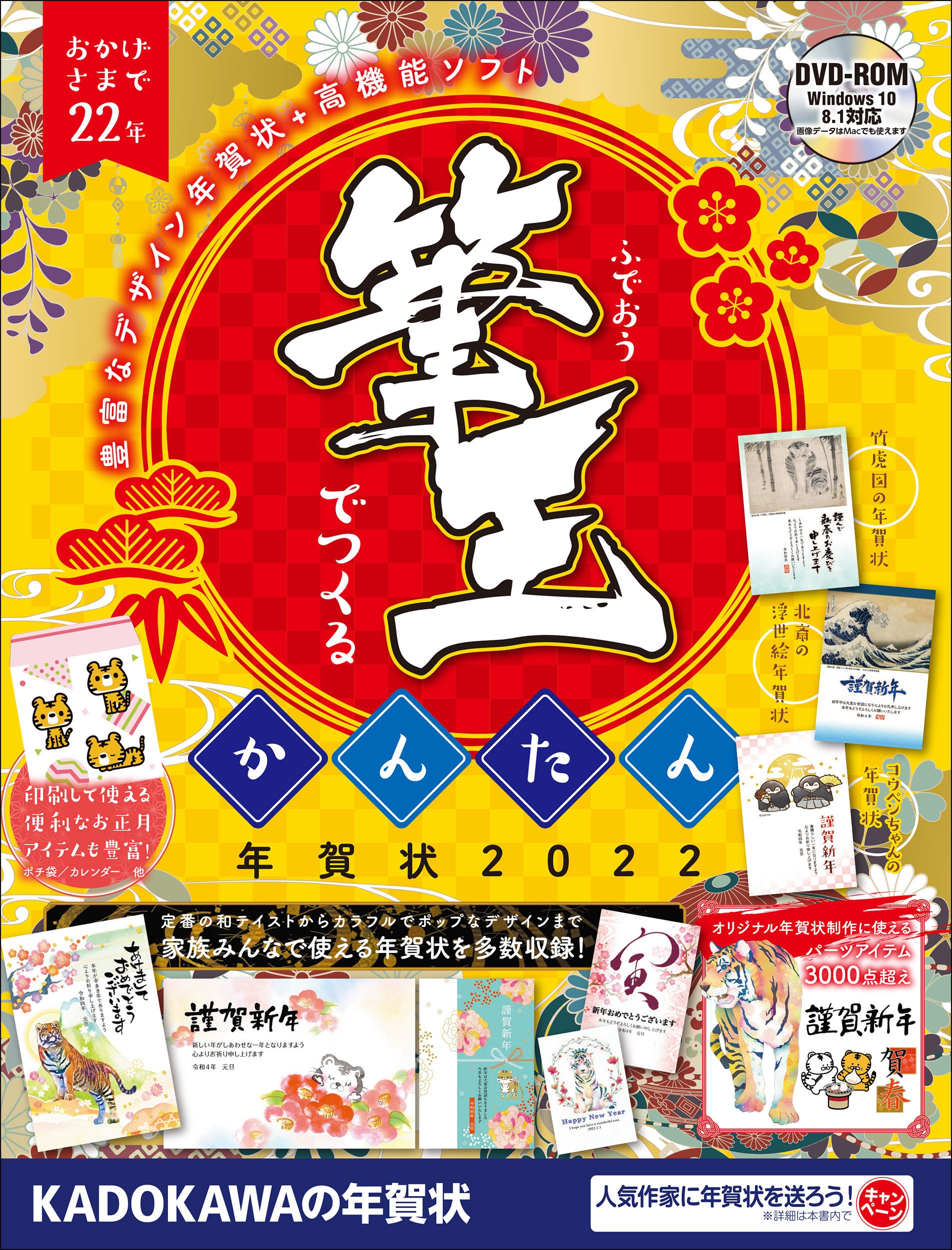 老舗の年賀状作成ソフト「筆王 特別版」と、著名な年賀状デザインやイラスト素材をたっぷり収録した贅沢な一冊。