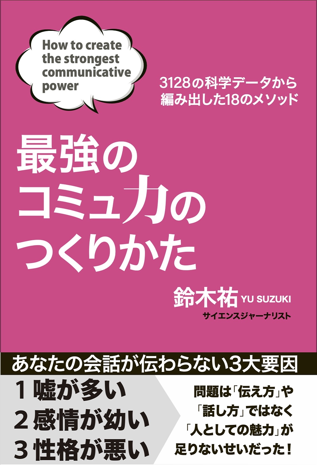 ただし、人としての"魅力"は努力で伸ばせる後天的なスキルです。そこで本書では3128のエビデンスに基づき、上記の3大要素を カバーし"魅力"を高める18のメソッドを提案。
