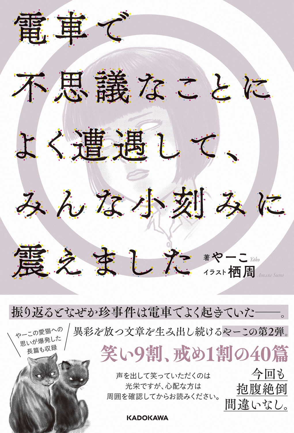「スマホの調子が悪くなり調べてもらいに行ったら恐ろしい事になっていた話」や「夜道で声をかけられて振り向いたら血の気が引いた話」「電車で赤子が泣き出して謝る母親を援護したら怖い目にあった話」など人気作の他、やーこの愛猫への思い溢れる長篇など書籍のために書き下ろした新作も10篇以上収録。