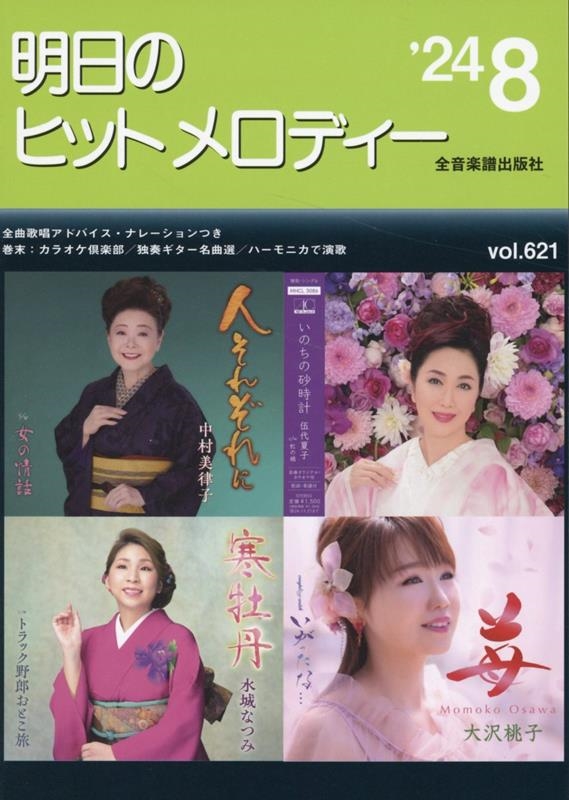 演歌・歌謡曲の最新曲をいち早く集めたカラオケファンのための最新曲集です。全曲に前・間・後奏、オブリガート、テンポ表示、リズム型、冒頭ナレーションと歌唱アドバイスまで入った完璧な楽譜になっています。巻末には楽譜が読めなくてもタブ譜でヒット曲が弾ける『独奏ギター名曲選』とハーモニカの独奏で演歌を楽しめる『ハーモニカで演歌』、分かりやすくて丁寧な指導で新曲が唄える『カラオケ倶楽部』といった色々なコーナーを収録。音楽マメ知識付きです。