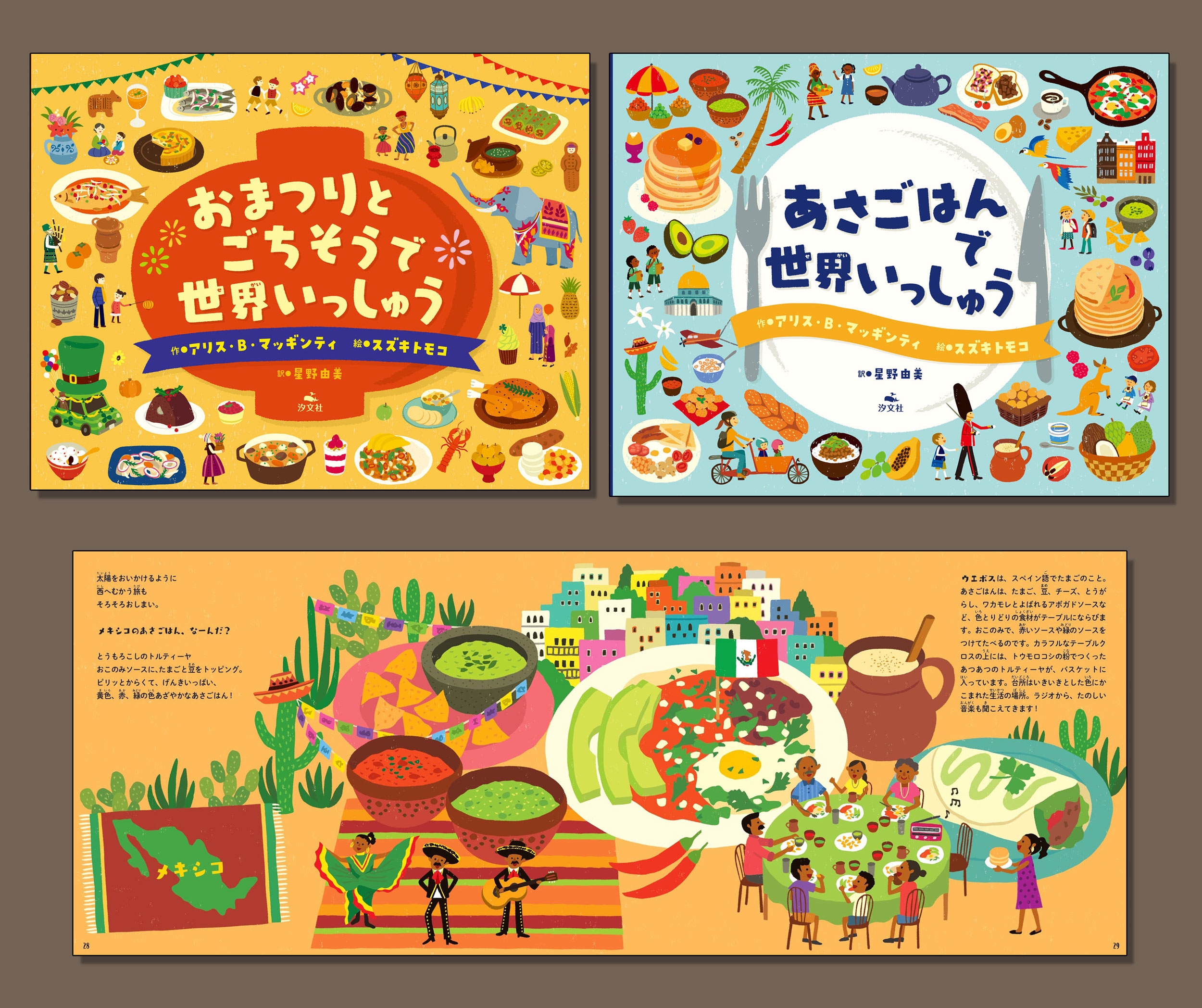中国、インド、イスラエルではどんなあさごはんをたべているの? 韓国のチュソクやボリビアの死者の日、ナイジェリアのヤムイモまつりにはどんな習慣があってなにをたべるの? 世界いっしゅうで食文化を知る、おいしくてたのしい絵本。