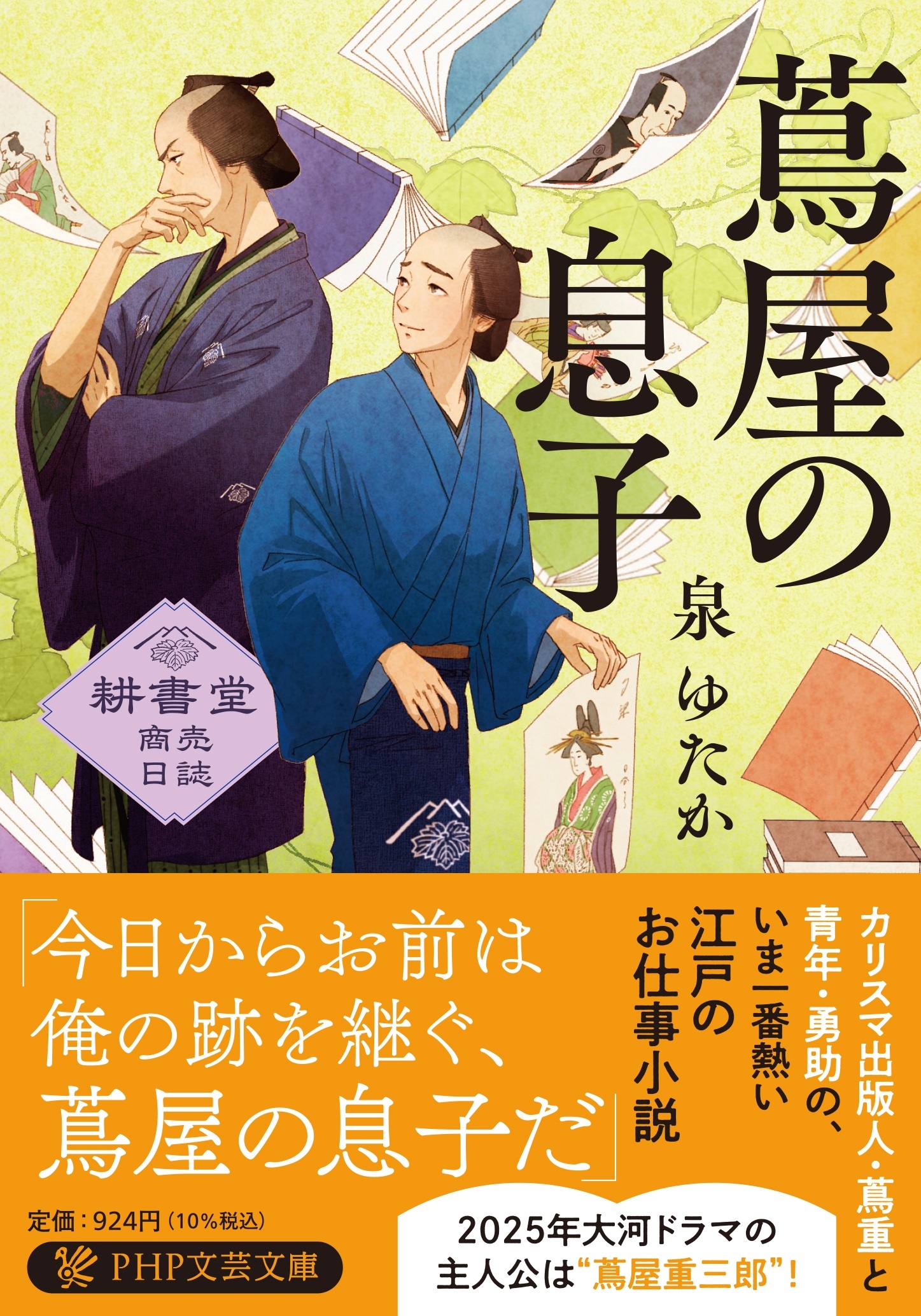 父を亡くした十九歳の青年、勇助は、母と妹を養うため、蔦屋重三郎が営む書店・耕書堂で奉公することに。厭世的でどこか投げやりな勇助を何故か蔦屋は気に入り、「いずれ自分の養子(二代目蔦屋)にする」と言い出す。豪快な蔦屋のもとで働きながら、勇助は江戸の一癖も二癖もあるクリエイターたちと渡り合い、物語を書いてもらえるよう奔走し――。江戸のカリスマ出版人・蔦屋重三郎と青年による、熱いお仕事小説!