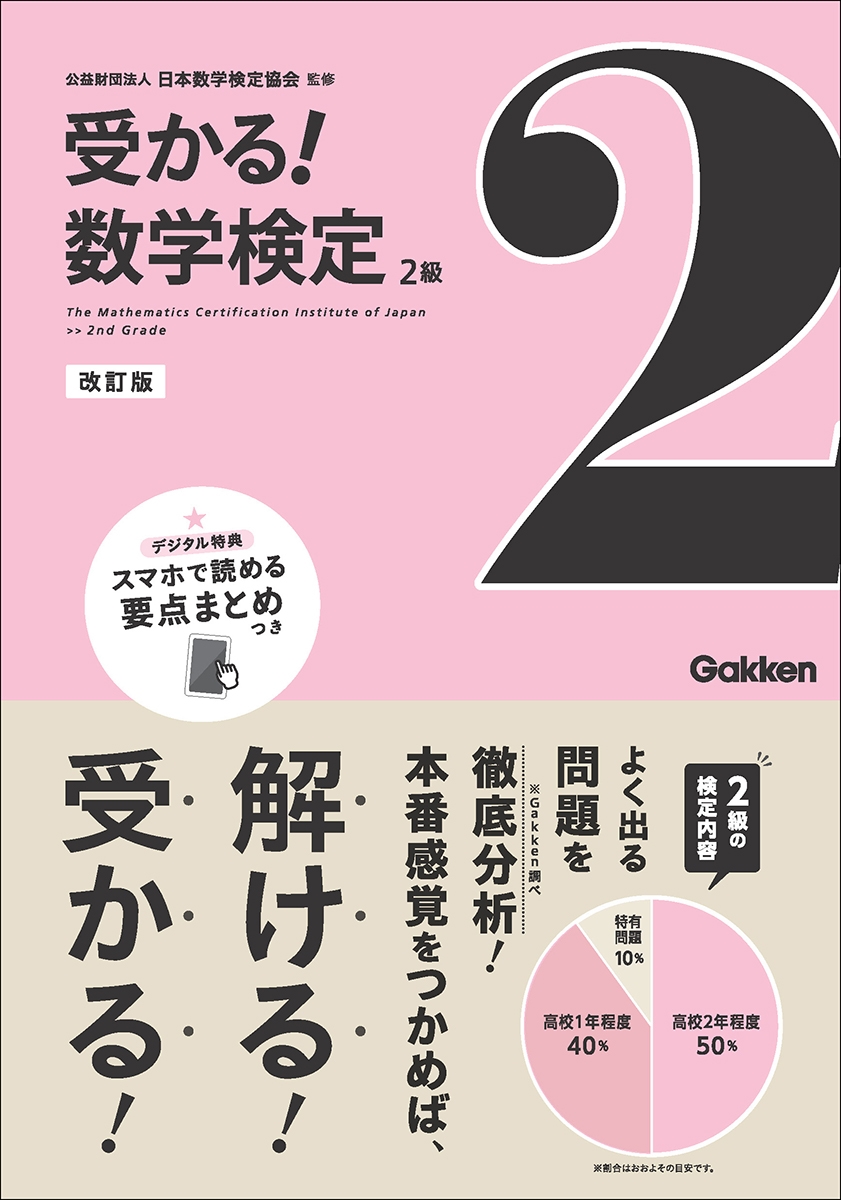 数学検定の2級は、主に計算力を測る計算技能検定(1次)と、応用力を測る数理技能検定(2次)に分かれています。同じ単元でも1次と2次で問題傾向が異なるため、それぞれのちがいをきちんと理解したうえで本番に臨むことが望ましいです。本書は二部構成になっており、前半で1次の対策、後半で2次の対策、とそれぞれのちがいを意識しながらしっかり対策することができます。