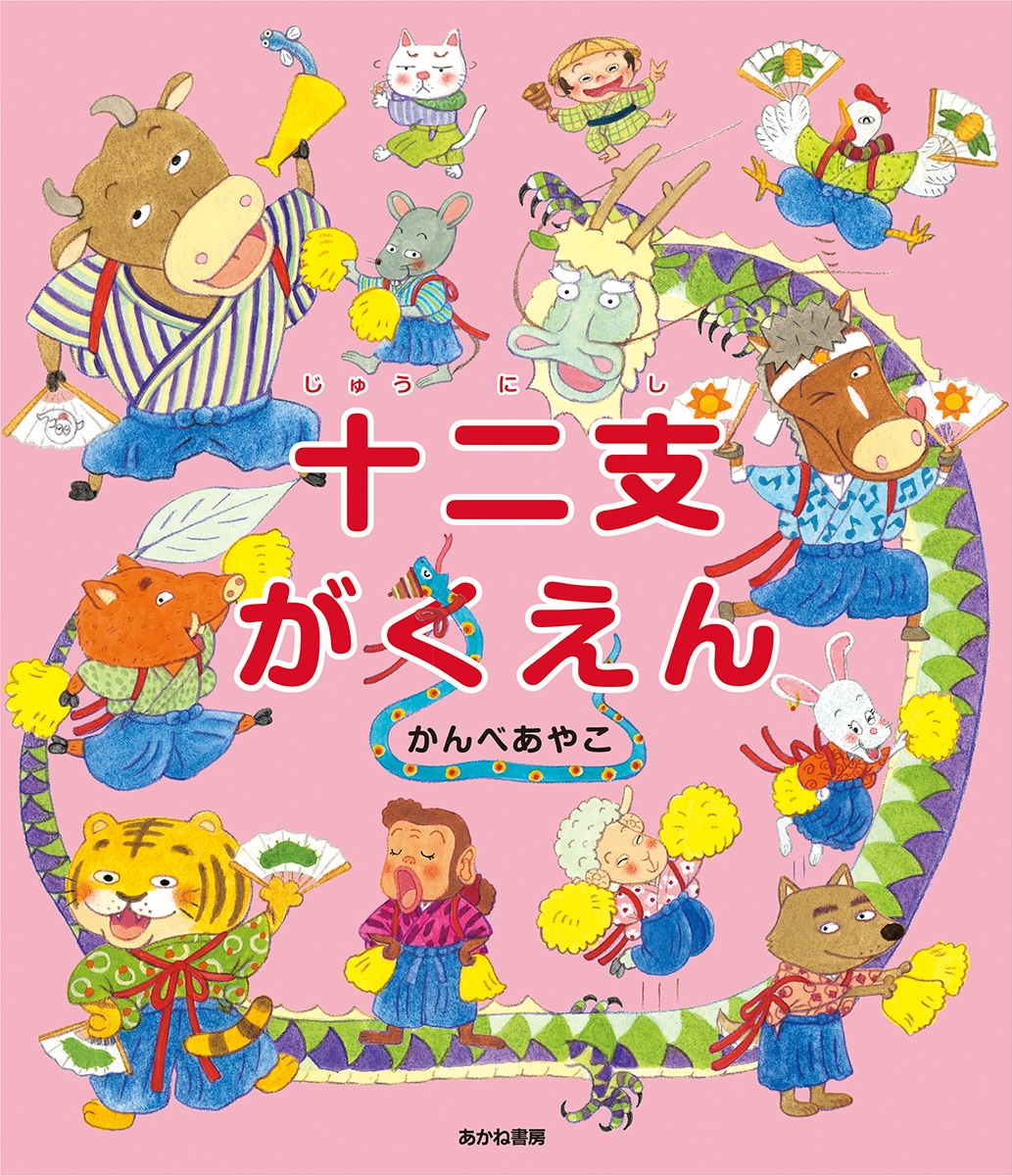 十二支の動物たちが学ぶ「十二支がくえん」から「♪ねこはまぬけだ~」と歌が聞こえてきました。悪口を歌われて「十二支の動物たちをギャフンといわせる!」と誓ったねこは「お手伝い」として学校にもぐりこみます。1年のリーダーとなるべく学ぶ十二支の動物たち。十二支は時間や方角も表していること、それぞれの動物に関する知識など、いっしょに学び、すっかり十二支とねこは仲良くなりました。十二支の雑学も満載、十二支のことが楽しくわかる絵本です!