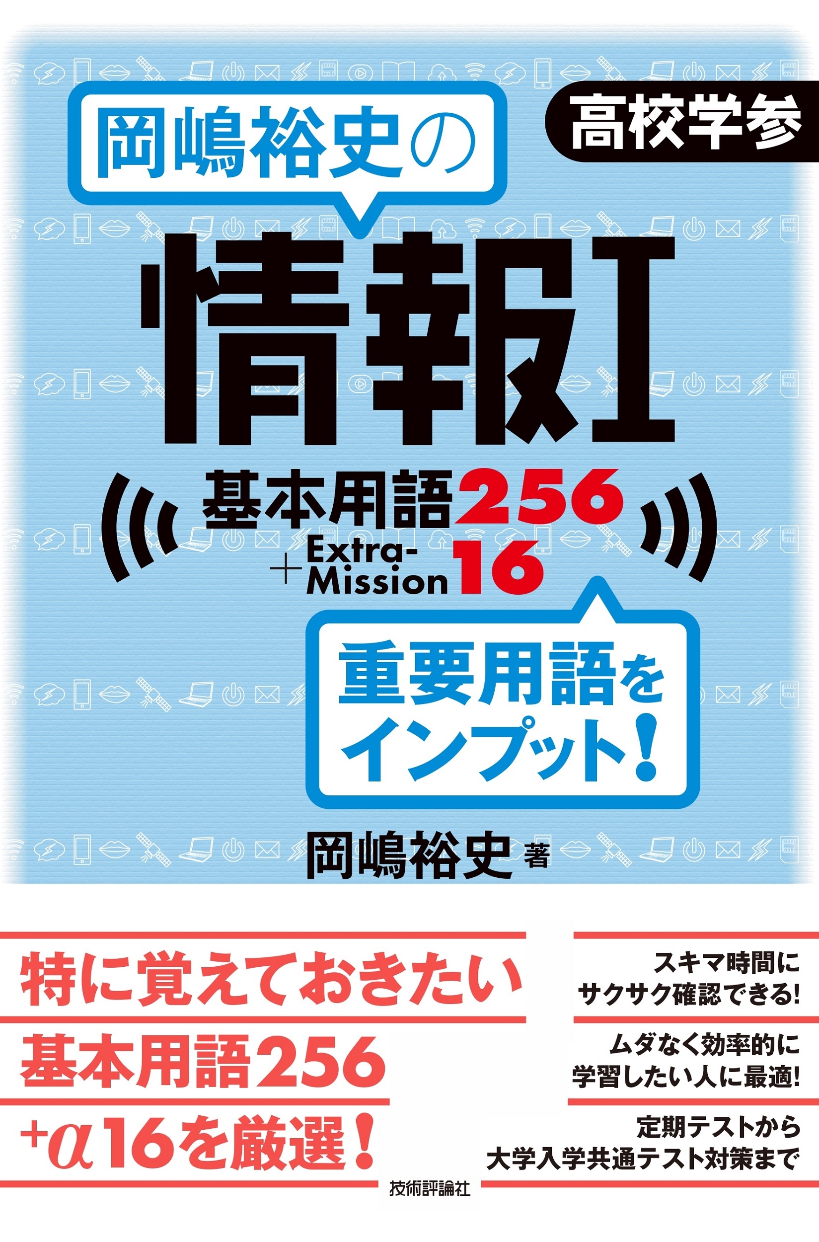 情報Iでは、コンピュータやセキュリティ、インターネット、モラルなど、扱う範囲が広く、さまざまな用語が登場します。これら用語をすべて覚えるのは大変です。本書では山ほどある用語の中でも、特に覚えておきたい基本の重要用語を256、そして+αの用語16を選びました。取り上げる用語は教科書の順番で並んでいます。ムダなく効率的に学習したい人に最適です。コンパクトなサイズなのでスキマ時間にも利用できます。定期テストから、大学入試共通テストまでご活用いただけます。