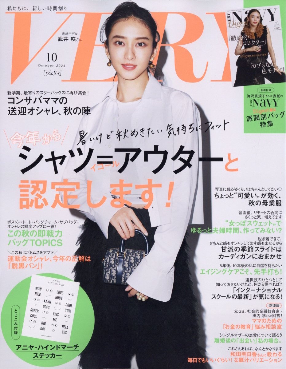別冊付録 VERY NAVY Digest 表紙:滝沢眞規子さん/とじこみ付録 アニヤ・ハインドマーチ ステッカー/大特集 今年から、シャツ=アウターと認定します!/表紙 武井咲さん