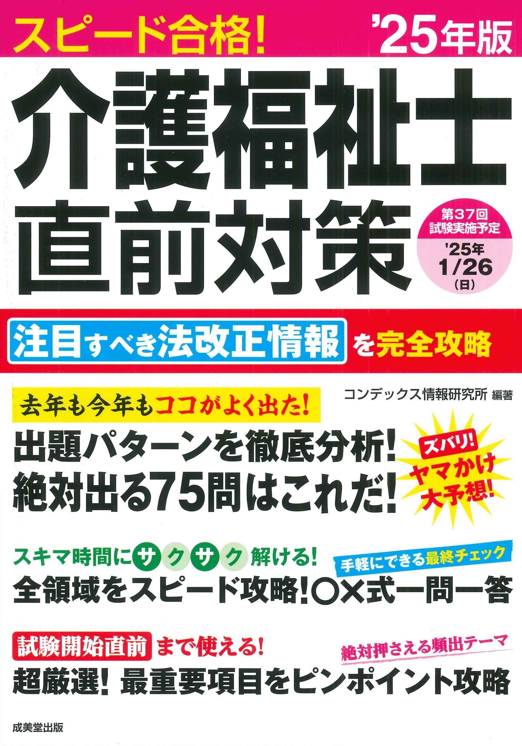 短期間で学習の総仕上げができる介護福祉士国家試験突破のための直前対策本。出題パターンを徹底分析し、絶対出る過去問75を大予想。