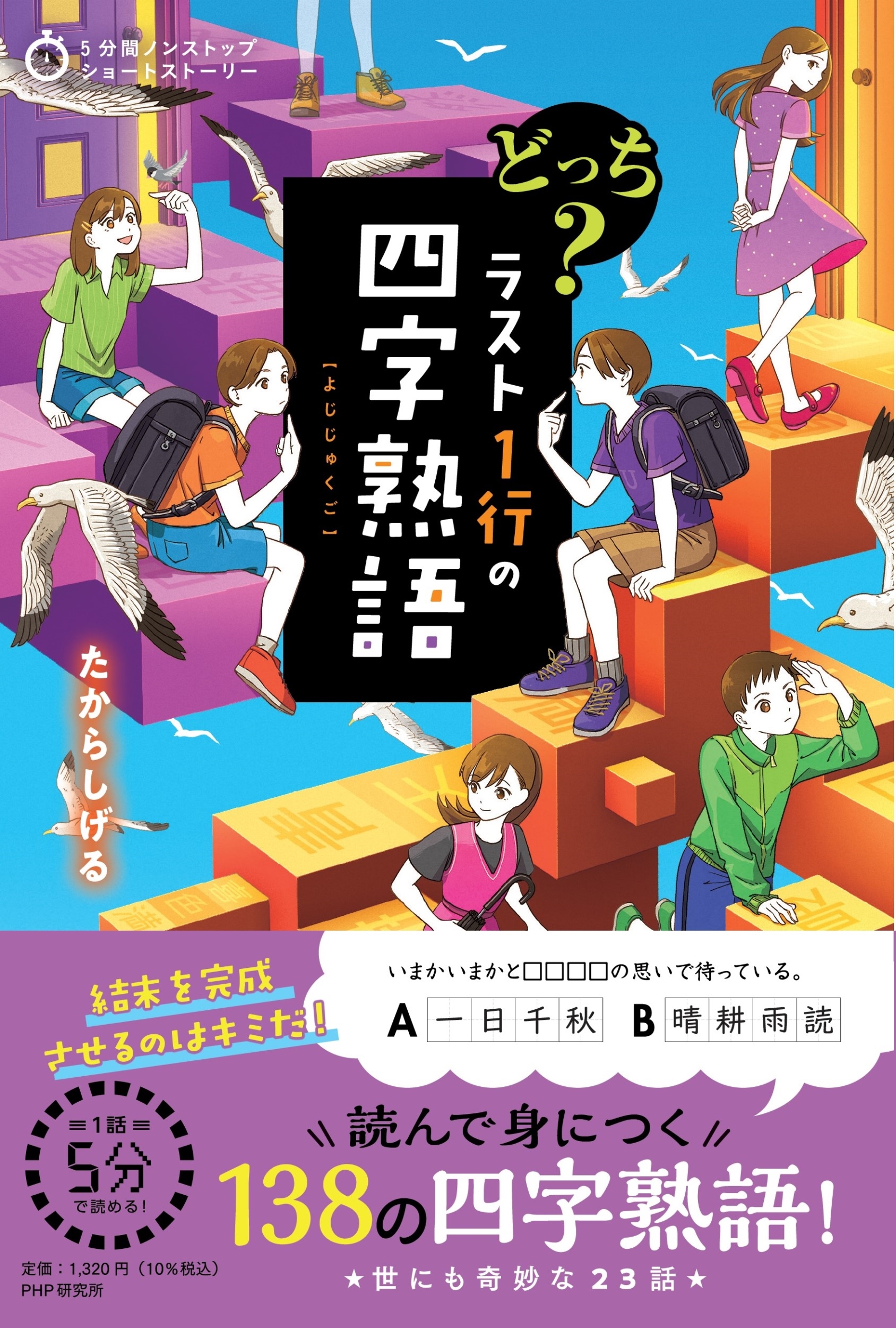 第1弾『ラスト1行の四字熟語』との違いは、読者が結末を「二者択一」すること。各話のラスト1行には2つの四字熟語が提案されており、どちらが当てはまるかを考えながら結末を完成させます。