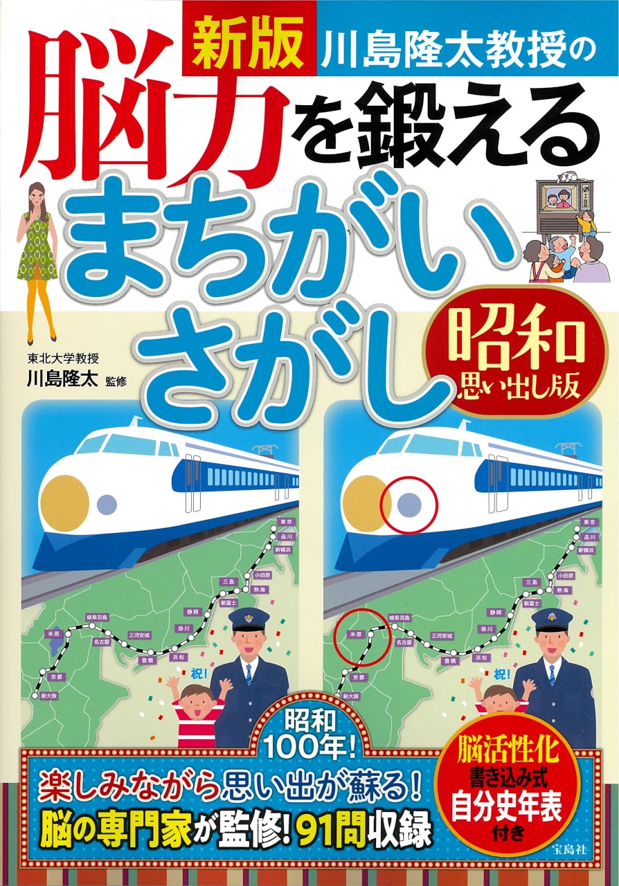 脳トレの第一人者、東北大学の川島隆太教授監修による、「脳力を鍛えるまちがいさがし」。今回新たな「昭和思い出し」をテーマに問題を収録。東京オリンピック、紅白歌合戦、ビートルズ来日、アポロの月面着陸、大阪万博などのイラストを使った問題で、左右の絵を見比べて、まちがいさがしを楽しみましょう。本書の特徴として、当時のあなたが何歳だったかを記録しながら問題を解いていくと、最後にあなたの自分史年表も出来上がります。