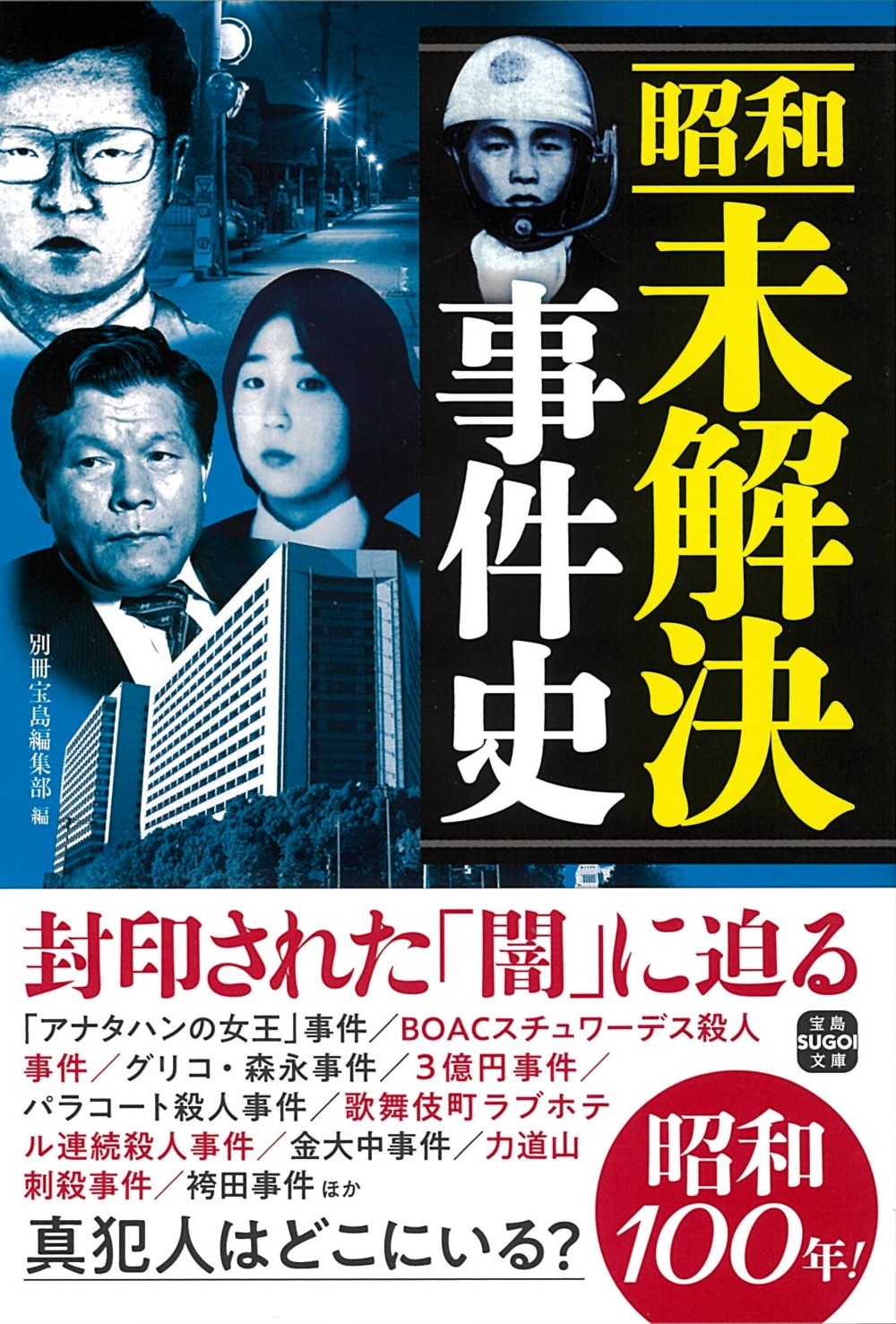 2025年は「昭和100年」です。すでにいくつかの新聞や雑誌で特集が組まれ、「昭和100年」と銘打ったムックや書籍が出ています。宝島社でも、昭和関連の書籍やムックを多く出していますが、特に他の出版社に先駆けて、昭和の謎や闇に隠れた人物たちを掘り下げる出版物に取り組んできました。そのなかでも、いまだに明らかにされていない未解決事件に取り組んだのがこの文庫です。これまでにムックと文庫で刊行した『戦後未解決事件史』に戦前も加えて、昭和の未解決事件の謎に迫ります。