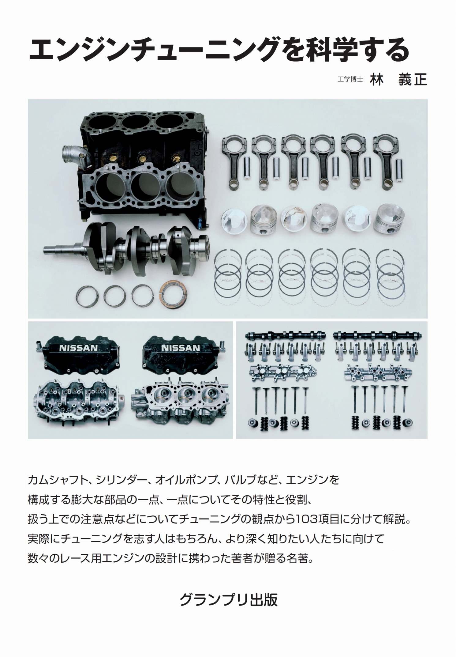 カムシャフト、シリンダー、オイルポンプ、バルブなど、エンジンを構成する膨大な部品の一点、一点についてその特性と役割、扱う上での注意点などについてチューニングの観点から103項目に分けて解説。実際にチューニングを志す人はもちろん、より深く知りたい人たちに向けて数々のレース用エンジンの設計に携わった著者が贈る名著。