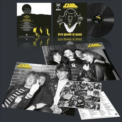 The very notion seems preposterous today (too good to be true, more like), but in 1981, underground legends Motorhead -- the band who once correctly boasted that if they moved in next door, your lawn would die -- saw their landmark No Sleep 'Til Hammersmith live album enter the U.K. Charts at number one! The New Wave of British Heavy Metal was also in full swing that year, with early champions like Saxon, Iron Maiden and Def Leppard already building from strength to strength, and a hungry throng of supplementary upstarts waiting in the wings to take their best shot at denim-and-leather glory. One of these was South London's Tank, and the reason we bring up Motorhead, first and foremost here, is because this power trio composed of the brothers Mark and Pete Brabbs and gravel-throated, former Damned bassist Algy Ward, had Lemmy and co. to thank for the lion's share of their musical inspiration -- not to mention many of their earliest concert bookings leading up to first album Filth Hounds of Hades. Released in early 1982 and produced by none other than Motorhead guitarist "Fast" Eddie Clarke, Filth Hounds naturally contained its fair share of scorching, paint-peeling heavy rockers (see the title cut, "Run Like Hell" and opener "Shellshock," whose silly caveman chants suggest just how much fun was had at these sessions), fueled by a similarly volatile cocktail of intensity and velocity as that made famous by the band's creative gurus. But the record also made room for more accessible offerings like amusing singles "Blood, Guts & Beer" and "He Fell in Love with a Stormtrooper," the sardonic "Who Needs Love Songs," and the surprisingly long-winded bluesy jam "That's What Dreams Are Made Of" (which some listeners may liken to Motorhead's "The Chase Is Better Than the Catch") -- all of which helped to showcase Tank's enviable instrumental chops at less frantic speeds. Even so, it's arguably another pair of teetotal punk metal masterpieces -- the self-explanatory "Struck by Lightning" and the arguably career best anthem, "Turn Your Head Around" -- that ensure Filth Hounds of Hades' standing as Tank's best album ever, and qualifying it as an essential item in the record collection of any serious '80s metal fan. ~ Eduardo Rivadavia