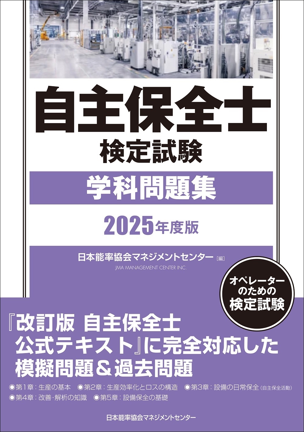 2001年にスタートした自主保全士検定試験は、製造業で働く現場オペレーターを対象に、毎年1万人以上の受験者数を誇るまでになりました。本書はその検定試験唯一の学科試験の問題集です。今回からは、日本能率協会マネジメントセンター(JMAM)が独自に編集する問題集としてリニューアルしました。過去の出題傾向をもとに問題を作成し、解答と解説をつけています。試験内容に沿った学習ができる問題集です。