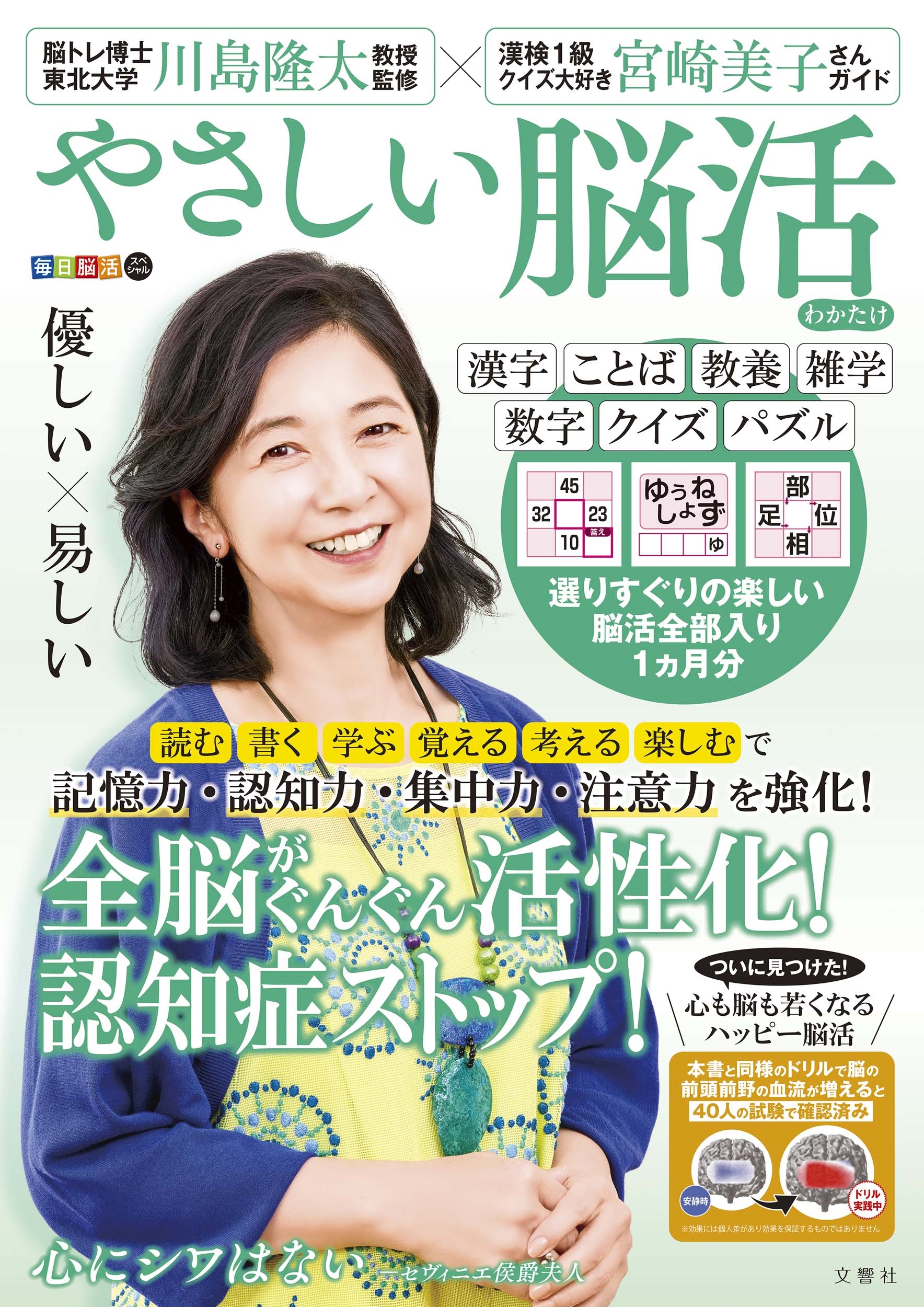 大好評シリーズ第5弾!脳トレ博士・川島隆太先生が脳活性化の効果を実証した脳ドリル1ヵ月31日分と漢検1級・クイズ大好き女優の宮崎美子さんが出題したトリビアクイズで国語・算数・理科・社会・教養・雑学など全ジャンルを楽しみながら認知症を予防!