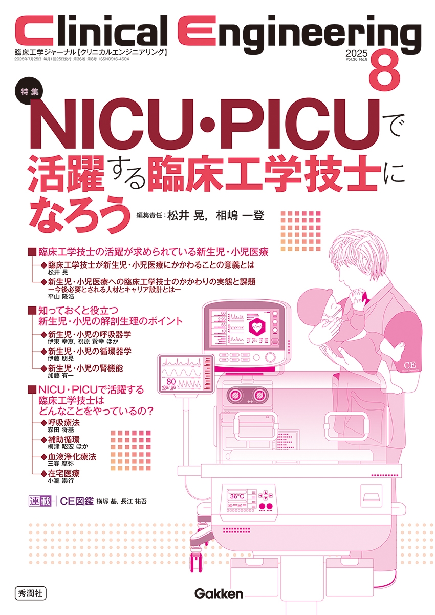 現在、新生児・小児医療の現場で臨床工学技士の参入が求められている。臨床工学技士が成人に対して行っている業務の知識や技術は新生児・小児医療でも大いに役立つことを、チーム医療の一員としてどう関わるかを踏まえて解説!