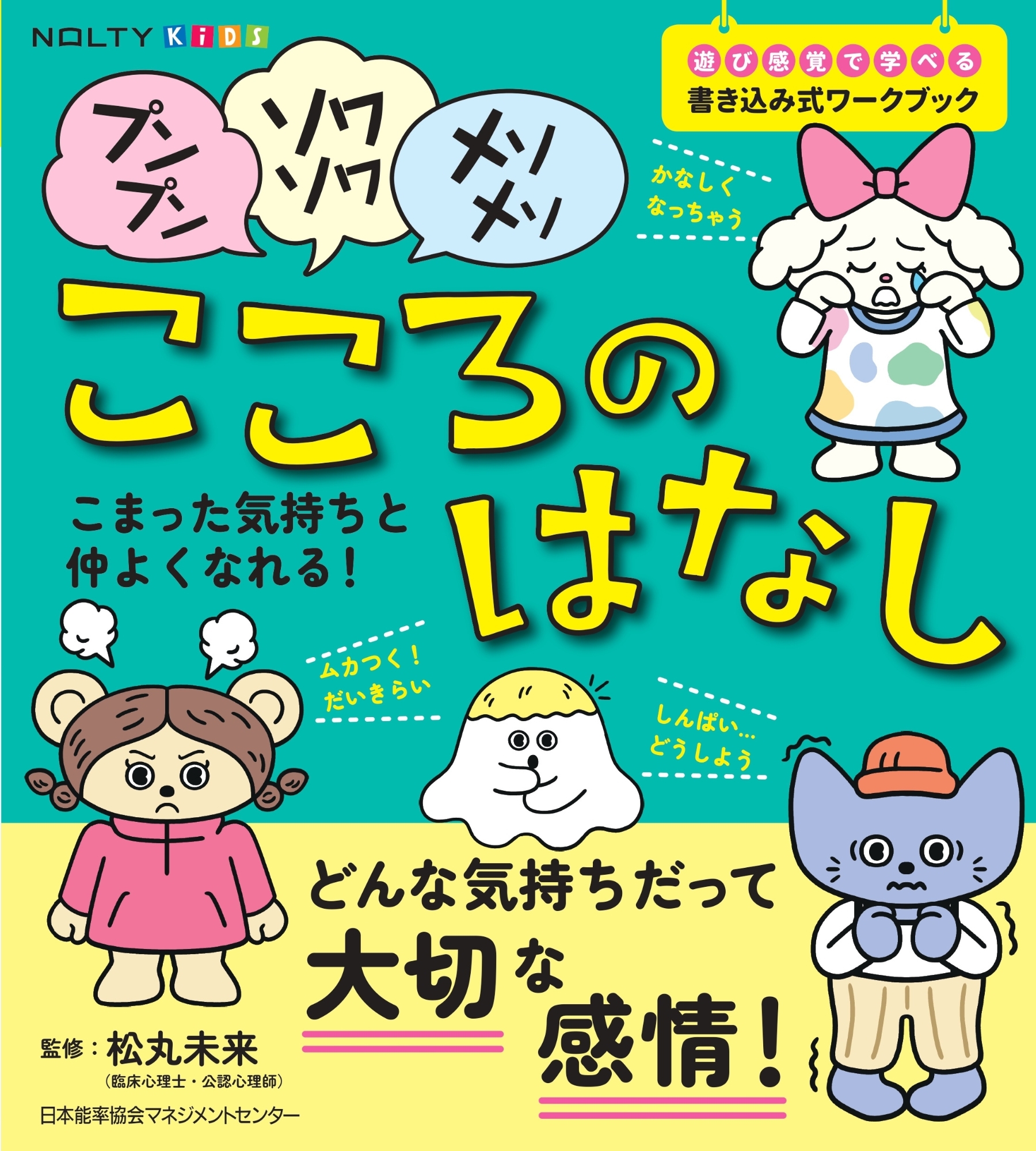 子どもたちが自分のこころの傾向を理解し、「怒り」・「不安」・「悲しみ」というネガティブ感情とうまくつき合えるようになるワークブック。本書では、怒り(プンプン)や不安(ソワソワ)悲しみ(メソメソ)などのネガティブ感情と向き合うことで、それらを受け入れたり克服したりする方法をわかりやすく解説していきます。深呼吸やお守りカードなど、すぐにできる対処方法から、物事の見方を変えて心を楽にする(「やわらかい考え方」や「別の考え方」)方法まで、マンガやイラストを交えた軽快なトーンで紹介。小学校低学年から読みやすい1冊です。