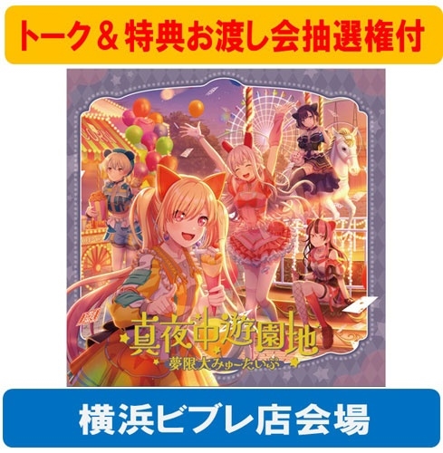 バンドリ!プロジェクトの新たなバンドとして始動したバーチャル系新バンド、夢限大みゅーたいぷ。通称"ゆめみた"の3rdシングル「真夜中遊園地」は、TVアニメ『カードファイト!! ヴァンガード Divinez デラックス決勝編』の週替わりエンディングテーマに抜擢!ゆめみた"ど真ん中"と言える電波感溢れる楽曲で、デビューからの約2年分の説得力を纏った、ライブでも盛り上がること間違いなしのアッパーチューン!! (C)RS
