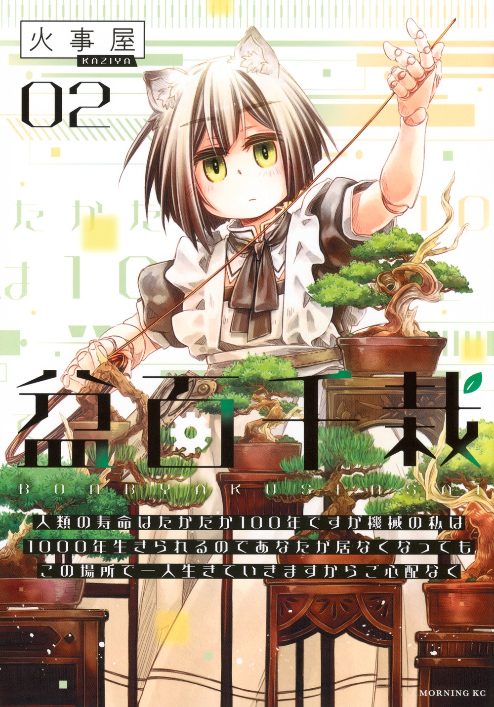 盆栽屋・季風園を、ひとりで切り盛りするアンドロイドのカンナ。彼女のもとを訪ねてきたハルカと「友達」になったカンナだが、「友達」についてはまだわからないことばかり。一緒に剪定したり、海に行ったり、大口顧客を見つけたり!? ハルカとの交流と盆栽を通じて、カンナは友情を、人間を、そして今は亡き「先生」の言葉の意味を知っていく――。美麗作画で描く、少し切ない(ちょい)ポストアポカリプスストーリー。